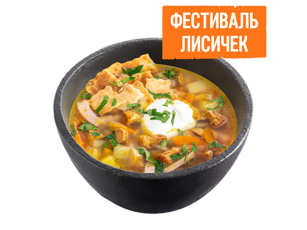 Суп с лисичками, беконом, сметаной, репчатым луком и зеленью